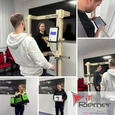 In einem spielerischen Balance-Test konnten wir unsere Standfestigkeit unter Beweis stellen – danach wurde unsere Rückenmuskulatur professionell vermessen, um muskuläre Dysbalancen frühzeitig zu erkennen.